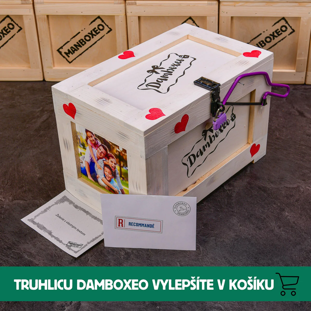 Truhlu Damboxeo so zámočkom a pílkou môžete navyše ešte ozdobiť napríklad fotografiami, ktoré mamičke pripomenú spoločne strávené chvíle. Pripísať môžete aj osobný odkaz, aby mamička vedela, že tento netradičný darček je naozaj od srdca. Tak ako tak si truhlu určite rada vystaví a bude s láskou spomínať na vydarené Vianoce.