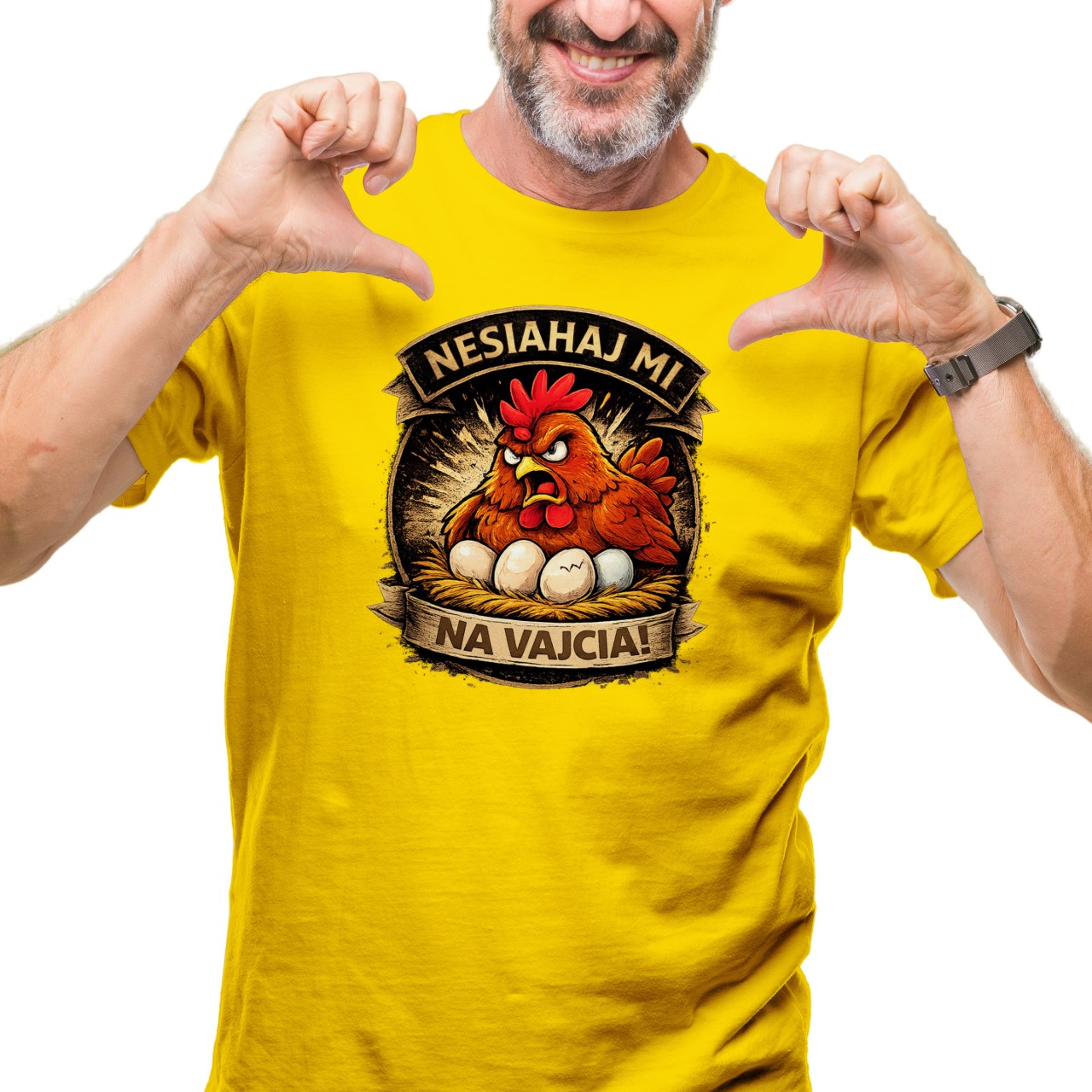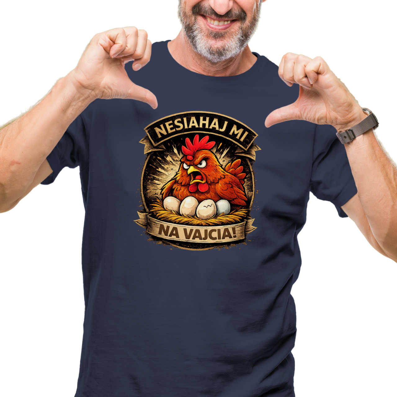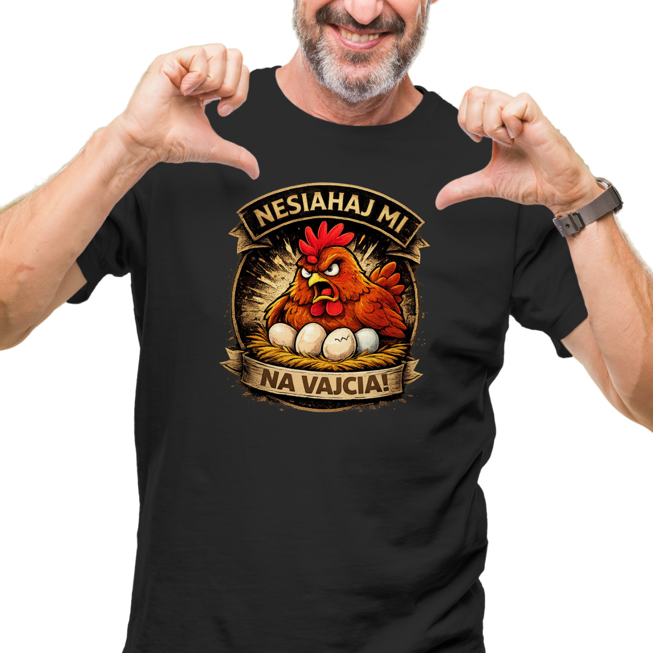 Pánske tričko s potlačou "Nesiahaj mi na vajcia"