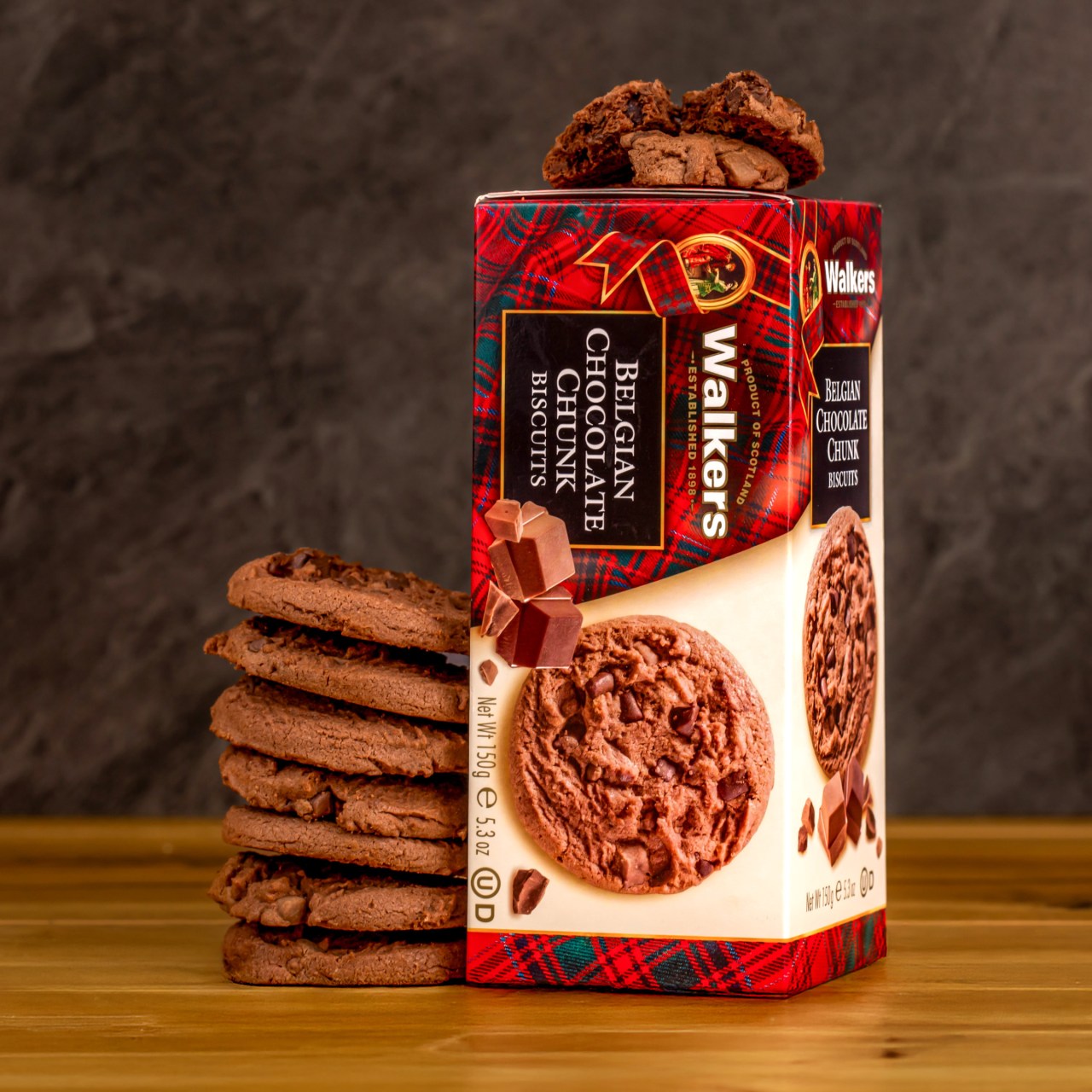 Walkers – Čokoládové sušienky s kúskami belgickej čokolády 150 g – Viac než len obyčajné sušienky! Hneď ako sa do nich zahryznete, prekvapí vás ich chrumkavosť a potom už len dokonalá chuť pravej belgickej čokolády.