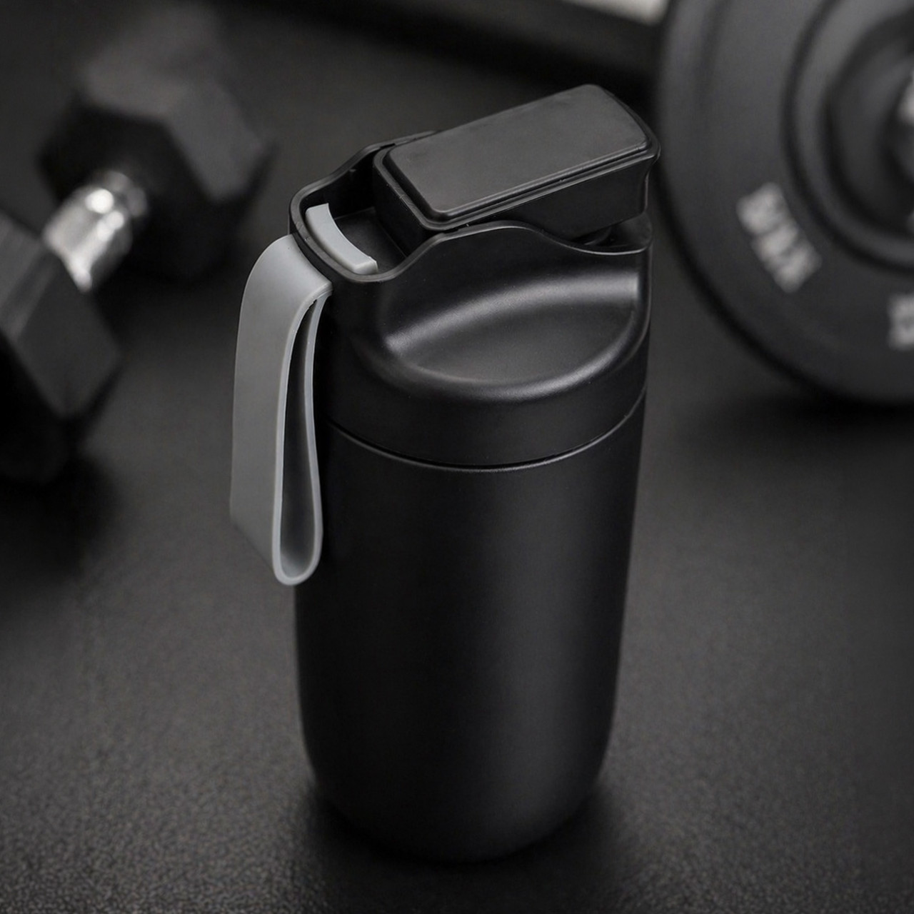 Čierny nerezový fitness shaker – štýlový spoločník pre aktívny život