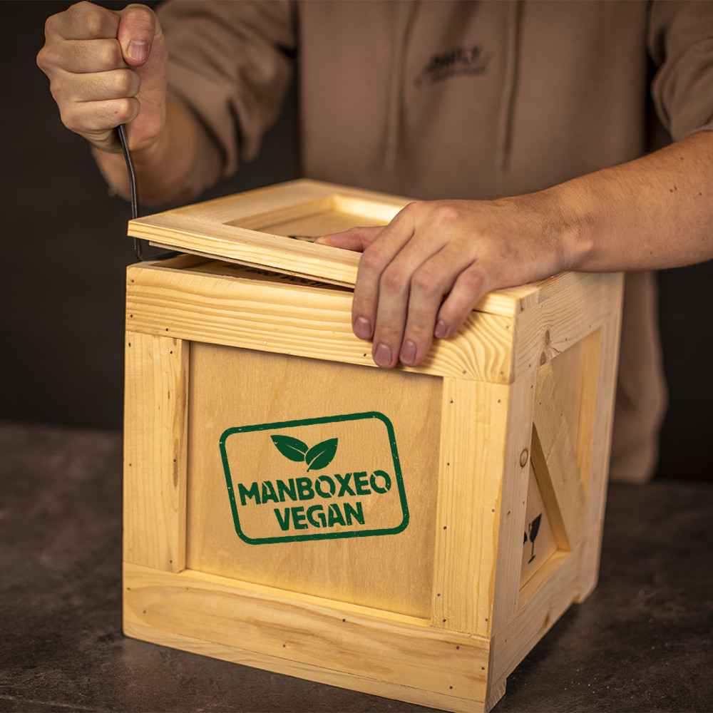 Čo sa skrýva v tejto debne? Parádny výbuch chutí pre všetkých vegánov, ktorí nebudú veriť vlastným očiam, keď nazrú dnu. 100 % vegánske jerky, pečienka trochu inak a množstvo ďalších dobrôt. Každý vegán, ktorému to dopraješ, bude slasťou mlaskať.