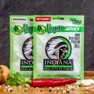 Vegan Jerky Original 25 g Indiana – Mäsu nefandíš, ale nejaká alternatíva sušeného mäsa by ti bodla? Vyskúšaj našu vegánsku variantu. Vďaka praktickému baleniu je to dokonalá maškrta do vrecka.