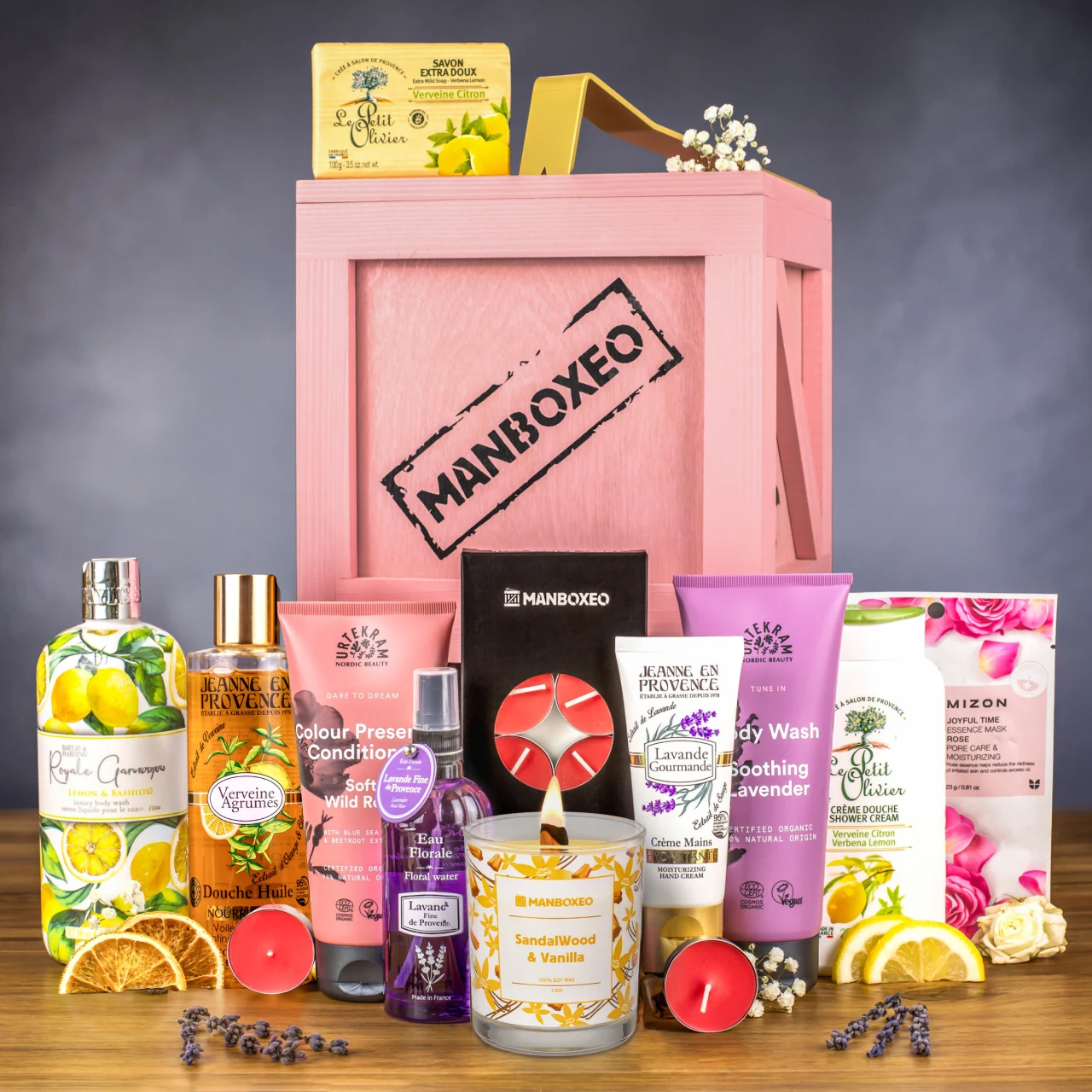 Ktorej žene by neurobila radosť kozmetika – navyše prvotriedna, voňavá a dokonale nakombinovaná tak, aby potešila celé telo? Upokojujúce sprchové gély, ktoré prinesú úľavu po celom dni na nohách, jemný krém, ktorý dodá pokožke hebkosť, a ako čerešnička na torte – pleťová maska. Mysleli sme aj na relax! V debne obdarovaná nájde aj božské sviečky. Stačí ich zapáliť a vychutnávať si pokojné chvíle, kým maska pracuje.