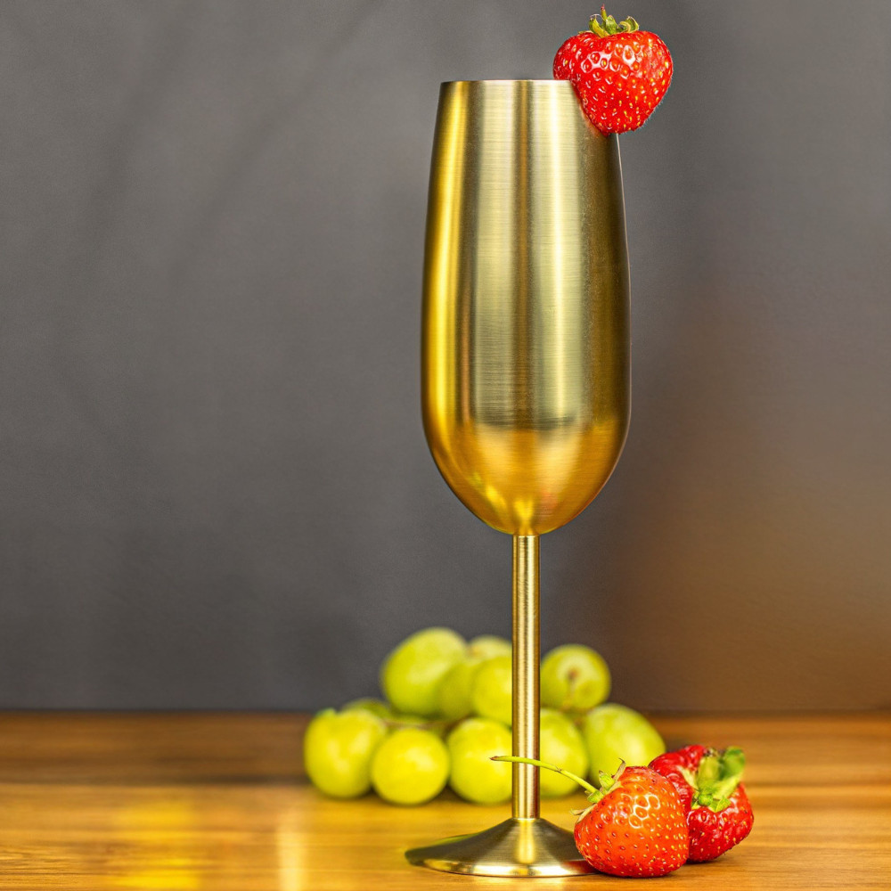 Nerezový pohár na šampanské – gold – Štýlová šampuska! Z tohto pohára bude vaše obľúbené pitie chutiť ešte lepšie.
