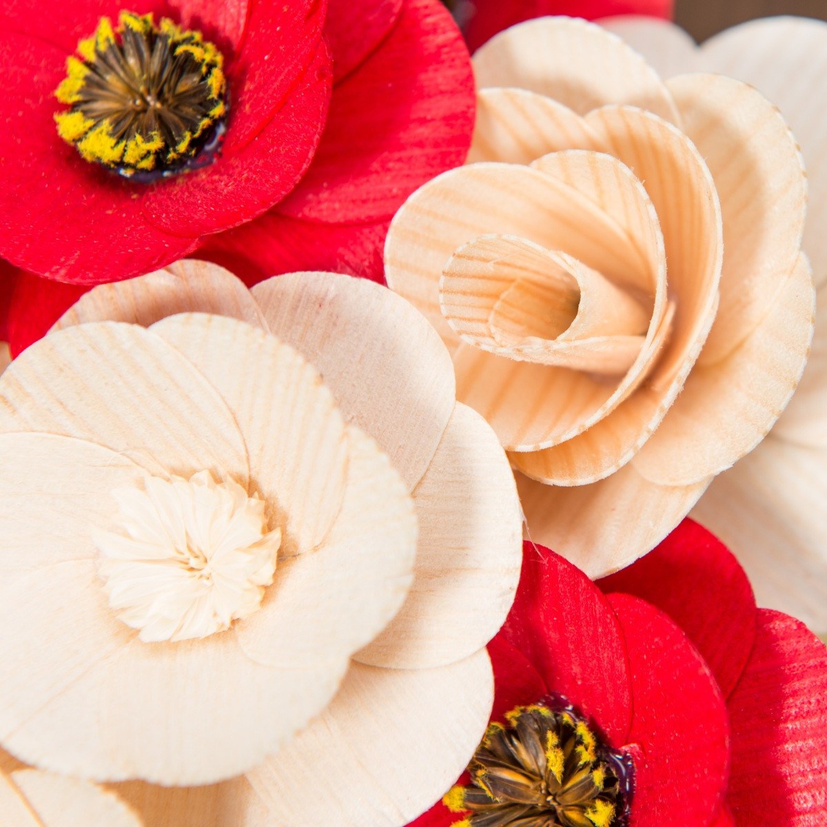 Každá kytica je starostlivo spracovaná českými remeselníkmi z prvotriedneho dreva. Je jedinečná, trvácna a ekologická – nikdy nezvädne a zostane krásna po dlhé roky. Na výrobu všetkých kvetov boli použité výhradne prírodné materiály. Stred niektorých kytičiek dokonca tvoria usušené, nafarbené kvetné lôžka a piestiky skutočných kvetov.
