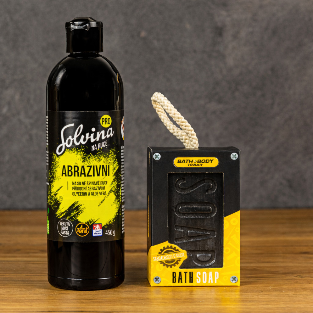 Solvina abrazívna tekutá 450 g — Najlepší priateľ všetkých kutilov a nestarnúca klasika. Poctivú drsnú solvinU nič nenahradí. Nezľakne sa žiadnej špiny ani mastnoty. A ruky budú dokonale čisté.