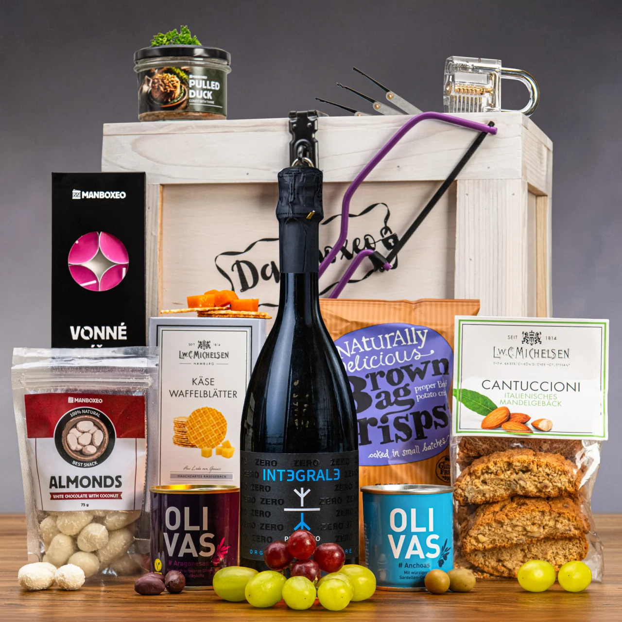 Vo vnútri čaká prosecco, ktoré si môžete vychutnať bez výčitiek. Je totiž bez pridaného cukru – a k nemu výber sladkých aj slaných pochúťok pre dokonalý zážitok.