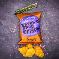 Zemiakové lupienky Brown Bag Crisps — rozmarín a morská soľ 40 g — Totálna chuťová bomba. Ručne vyrábané chipsy doladené v Anglicku do dokonalosti príchute rozmarínu a morskej soli. Všetky ingrediencie sú 100 % prírodné a ich súhra je nezabudnuteľná.
