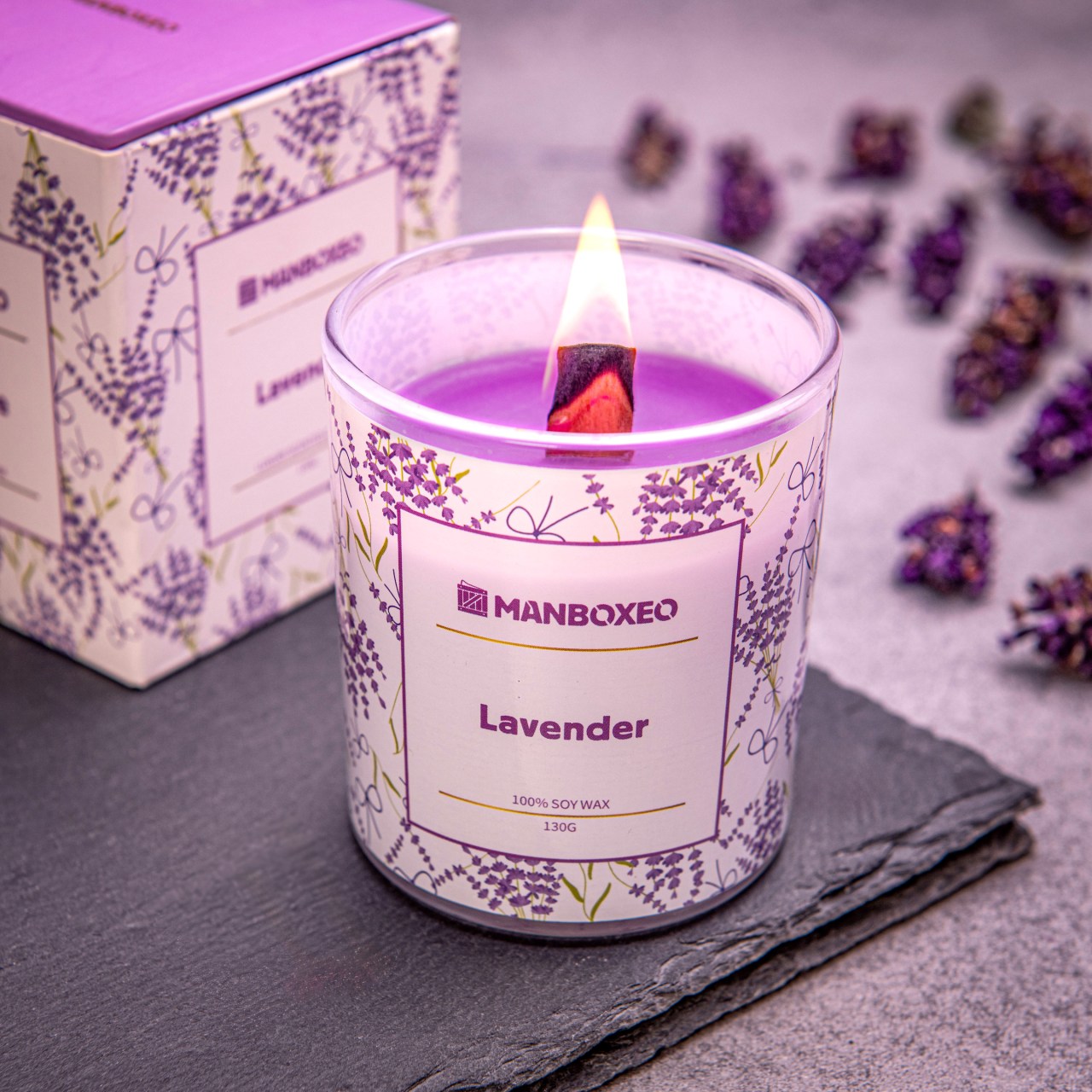 Vonná sviečka – LEVANDUĽA – 130 g - Upokojujúca vôňa levandule pomáha zmierniť stres a podporiť kvalitný oddych. Perfektná voľba na večerný relax alebo meditáciu.