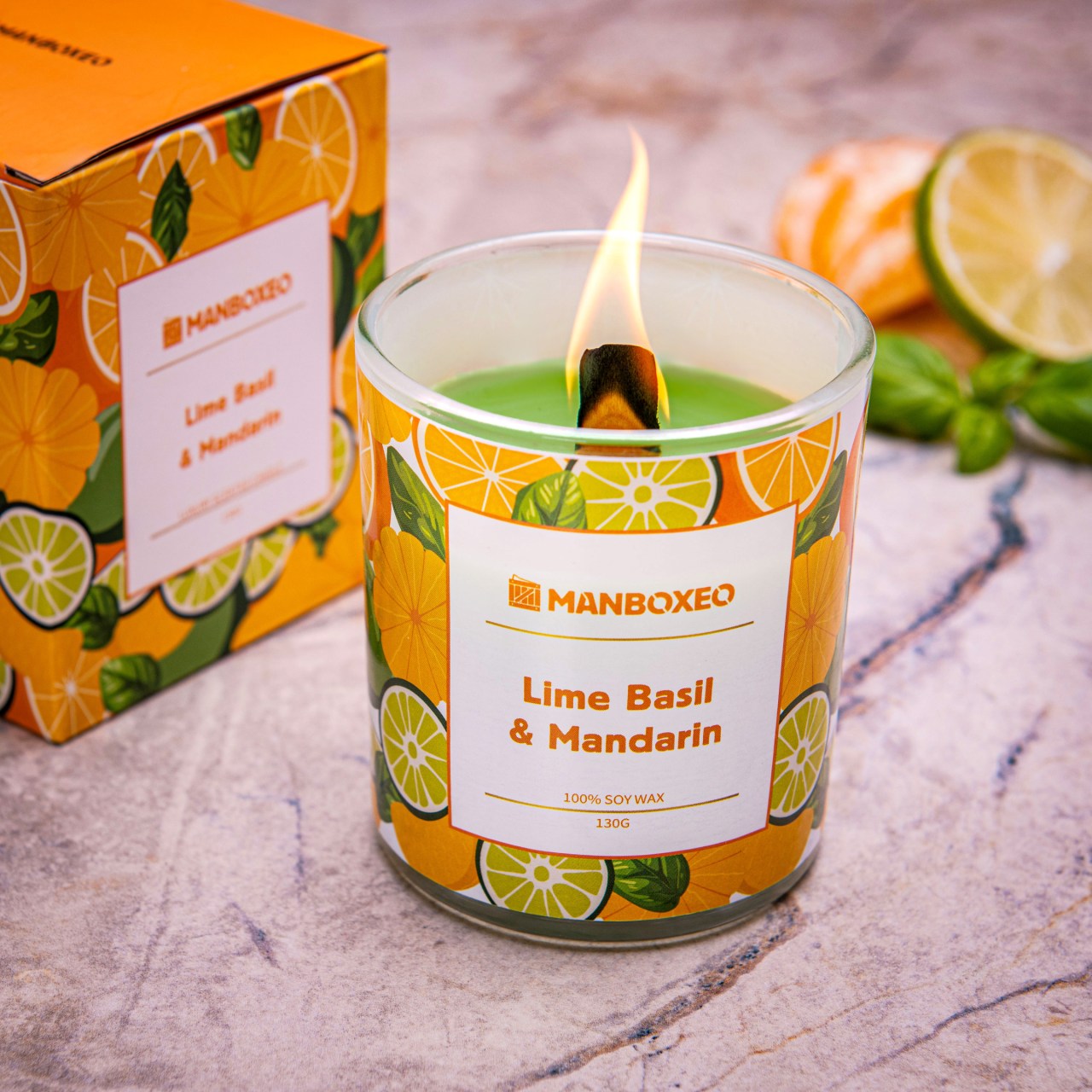 Vonná sviečka – LIME BASIL & MANDARINE – 130 g - Svieža citrusová vôňa s tónmi limetky, bazalky a mandarínky dodá priestoru energiu a sviežosť. Osviežujúca kombinácia ideálna na každodenné použitie.