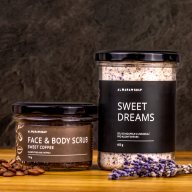 ALMARA Relaxačná soľ do kúpeľa Sweet Dreams 450 g - Porcia skutočného oddychu. Prírodná kúpeľová soľ s kvetmi levandule pôsobí ako voňavá uspávanka a pomáha k lepšiemu zaspávaniu aj pokojnej mysli.