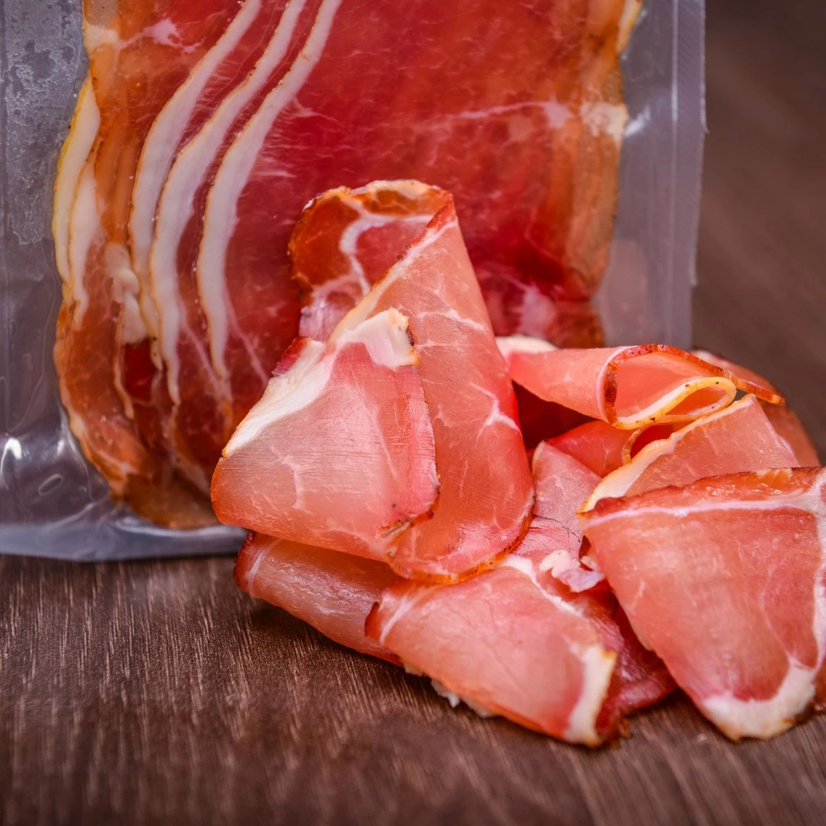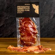 Prosciutto z bravčovej kotlety zaúdené studeným dymom – tá najchudšia, starostlivo vybraná kotleta zrela v suchých a tmavých miestnostiach, aby získala výraznú chuť a jedinečnú arómu. Nechali sme ju vyrobiť na mieru v malej krkonošskej firme, ktorá kladie dôraz predovšetkým na kvalitu surovín, tradíciu pri príprave a poriadne vyúdenie.