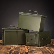 - štýlová kovová muničná debna so sklopným madlom na ľahké prenášanie