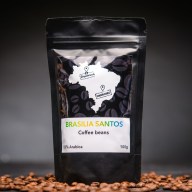Brasilia Santos 100 % Arabica 100 g – ide o najznámejšiu brazílsku kávu. Ideálny základ pre espresso zmesi. Výrazná je sladkastá chuť, najskôr ľahko korenená, až postupne karamelová. Minimálna stopa horkosti, stredne tónovaná kyslosť. AC – 2, HOŘ - 4