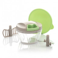 Originálny a praktický ručný mlynček funguje na princípe ťahania za špagát, aby sa sekací mechanizmus uviedol do chodu. Čím dlhšie pritom budete za špagát ťahať, tým jemnejšie budú potraviny nasekané. Ostré nože si poradia so zeleninou aj bylinkami, zvládnu dokonca vyrobiť aj hladké pesto alebo pyré. Sada navyše obsahuje nástavec na šľahanie a miešanie (napríklad vajec), ktorý vymeníte za nože, a tiež praktické veko, ktorým mlynček uzavriete a nasekané potraviny v ňom môžete rovno uchovávať.
