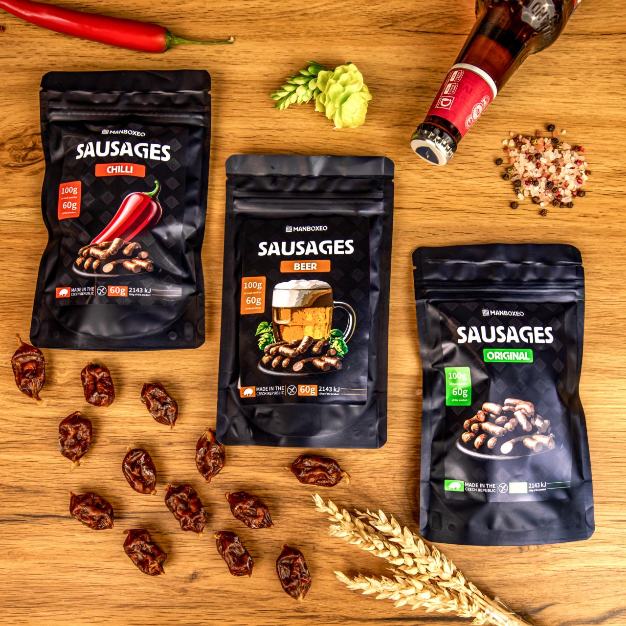Klobásky Pivné — Dve skvelé veci sa spojili. Vznikli tak údené klobásky s chmeľom plné mäsa, ktoré vylepšia každé posedenie s priateľmi pri pive. Raz ochutnáte a nebudete môcť prestať!